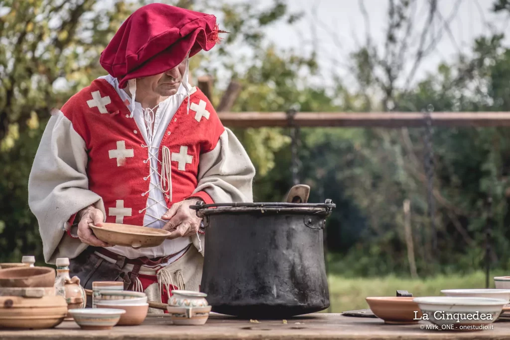 “Quando in cucina vi recate di questi attrezzi abbisognate : pentola, tegame, coperchio, paiolo, non ne manchi neppure uno solo, mantice, treppiede, spiedo, girarrosto bisogna avere a ogni costo, e un paiolo appeso sul fuoco ché l’acqua calda non costa poco , mezzaluna , tagliere , strofinaccio , padella , grattugia e setaccio, chi mestolo e schiumarola non ha di sicuro il suo tempo perderà.