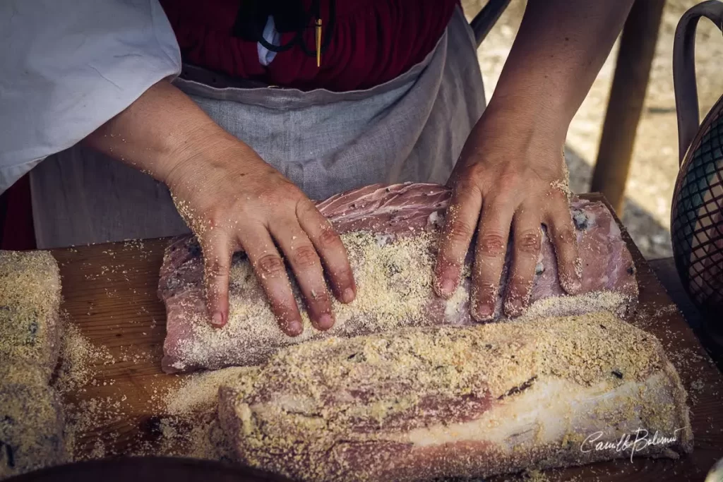 Piccole ciotole per senape e sale, sempre pulite, non sarebbe male, zolfo, acciarino , segatura e tanta legna , poi con bravura accendi e attizza un bel fuoco , che servirà di certo al cuoco.”